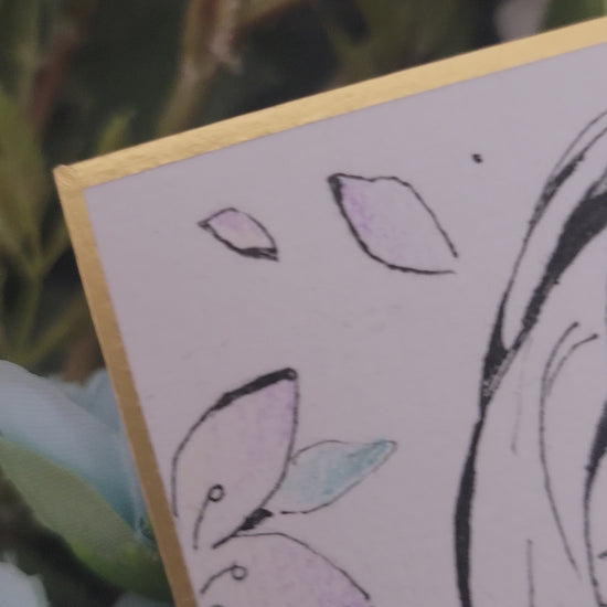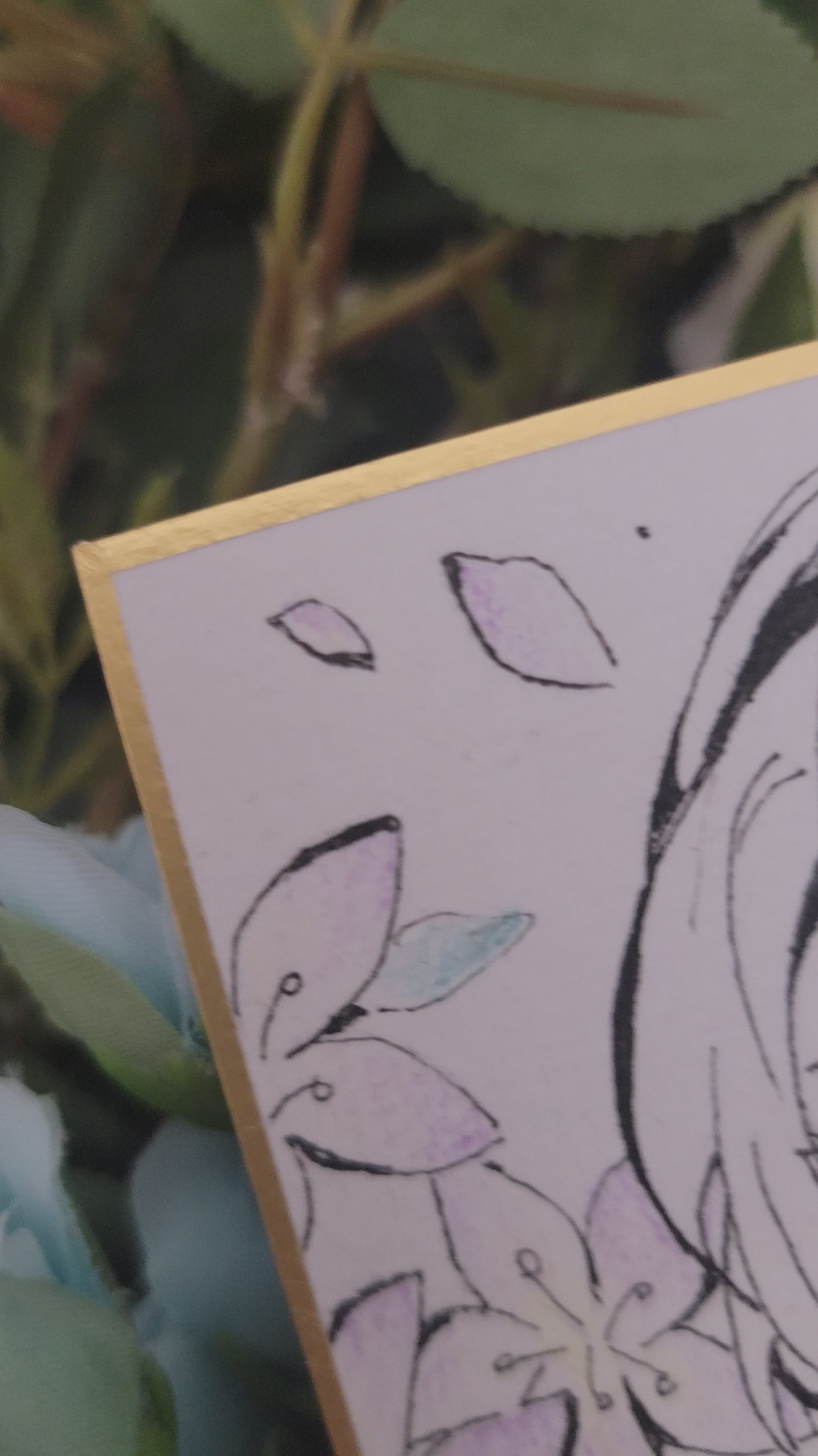 Traditionally hand-drawn one of a kind artwork of 2B from NieR. The materials I used are fine liner pens and colored pencils, and a shikishi board (washi paper on hardboard with gold foil edging). This is original fan artwork, not a print (i.e., there is only one available).